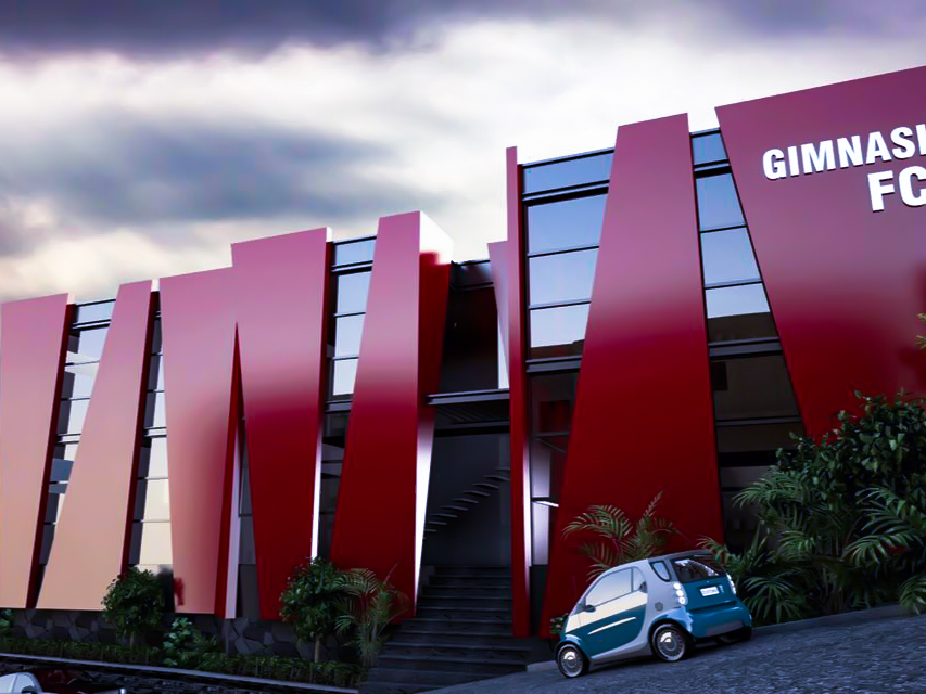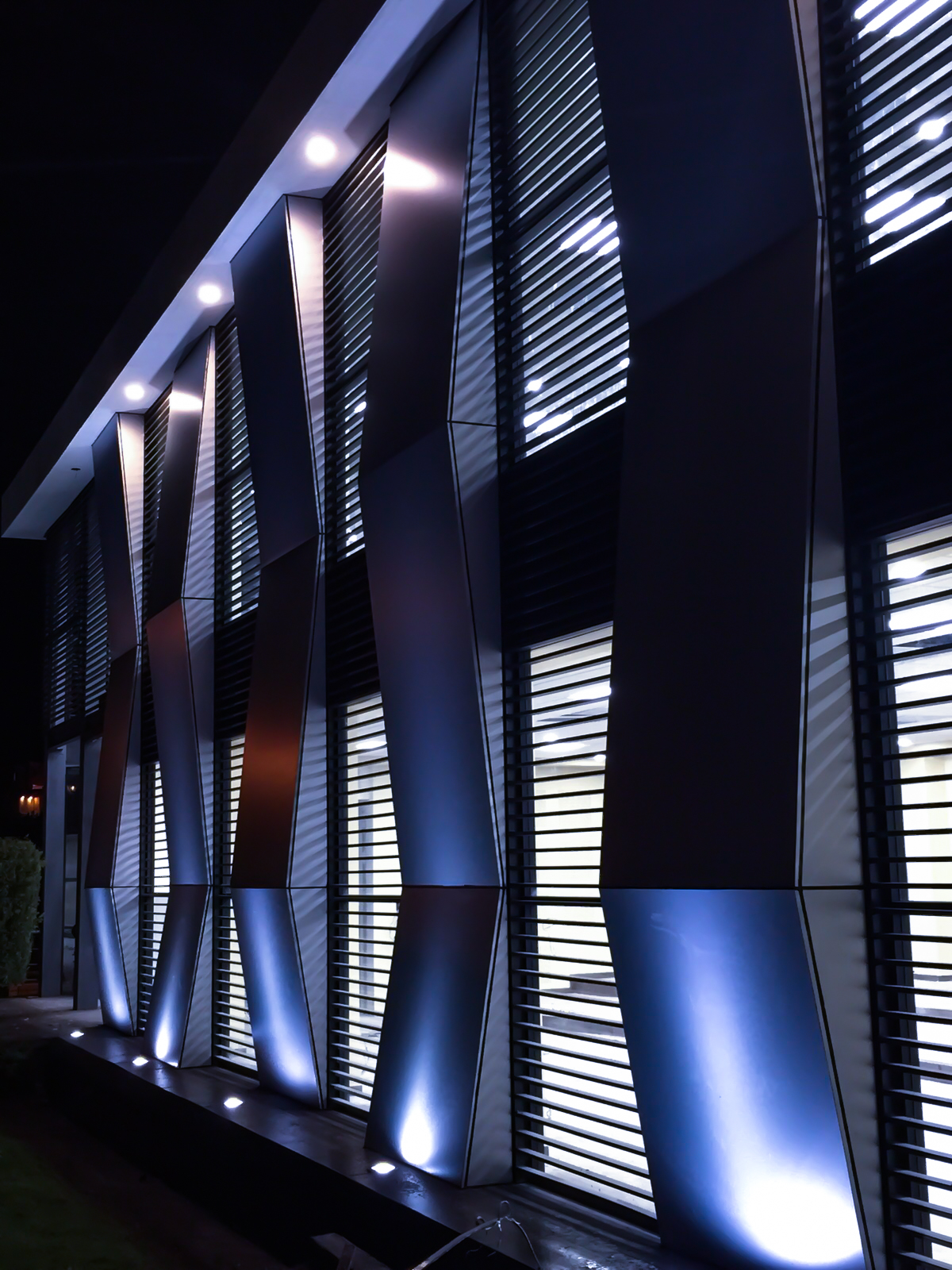 Edificio a base de sistema losacero de 2 nivelesy fachadas modernas de aluminio compuesto.